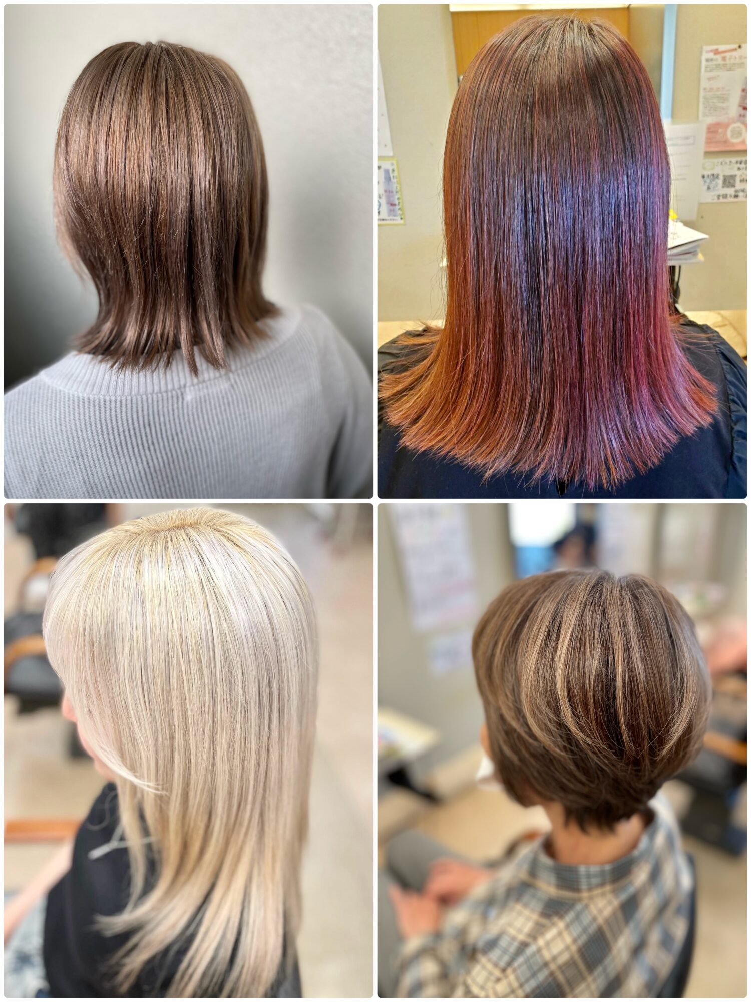 再現性カットと低phのカラー薬液は髪に負担がかからずツヤを与えます。